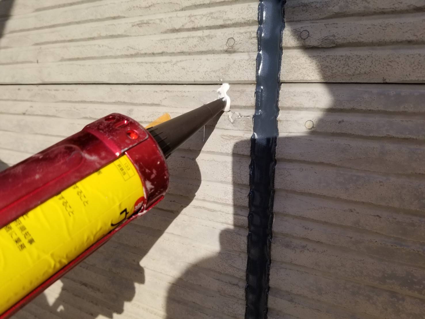サイディングのひび割れやビスで補修した後を埋めてきます!