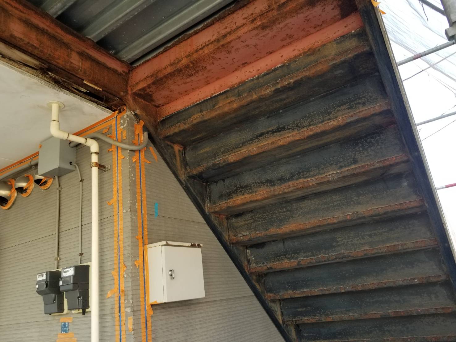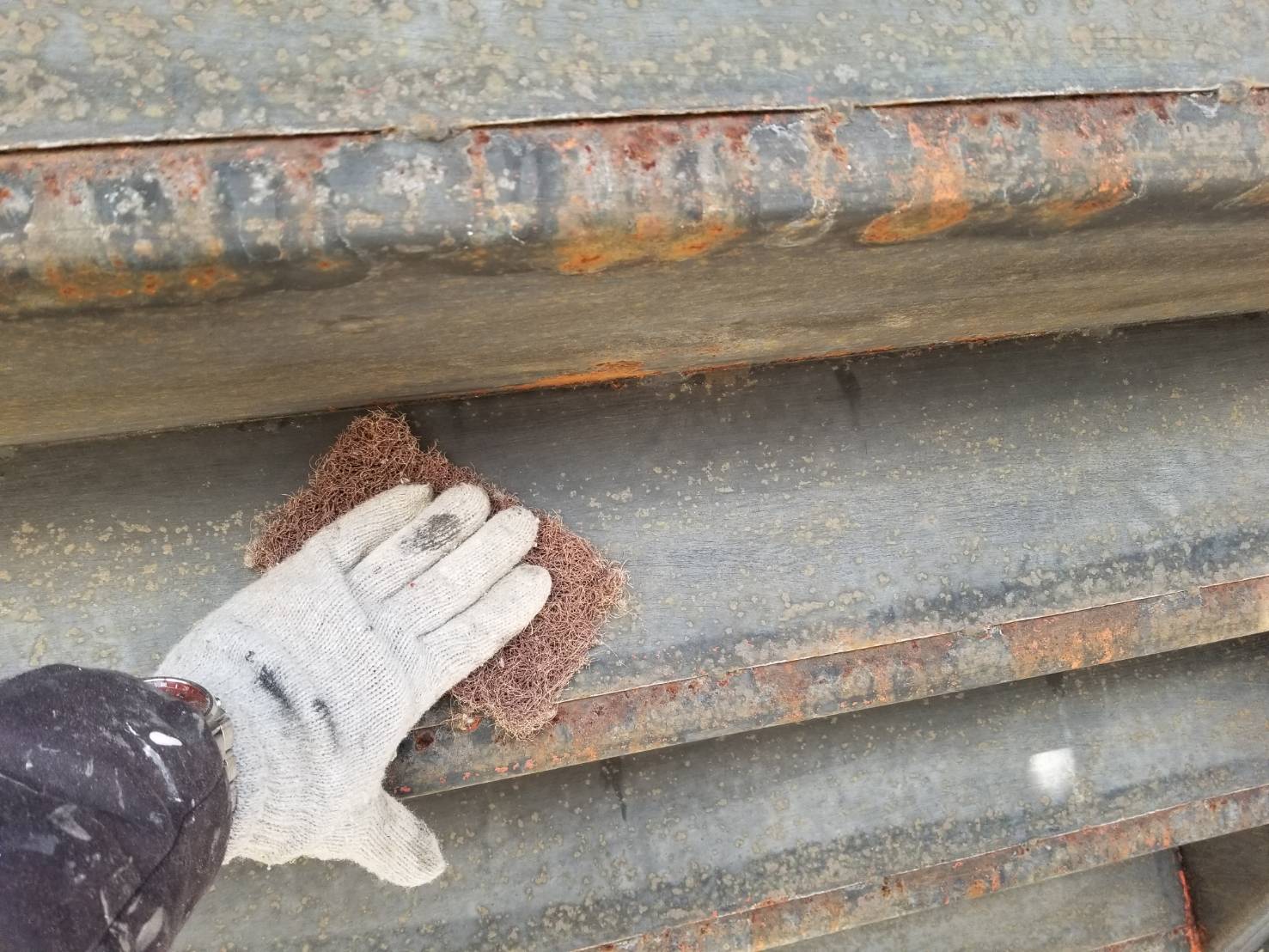 浮いてる錆、塗膜などを落とし塗料の密着を良くする為に細かい傷をつけます!