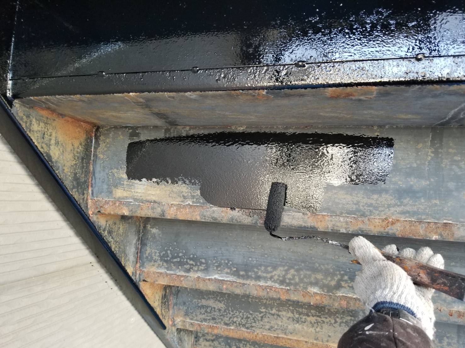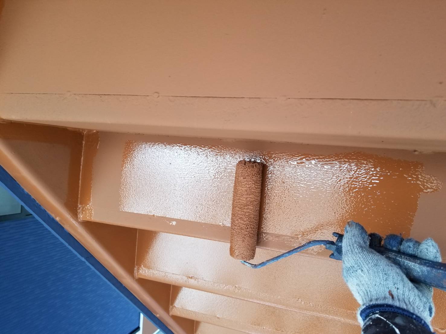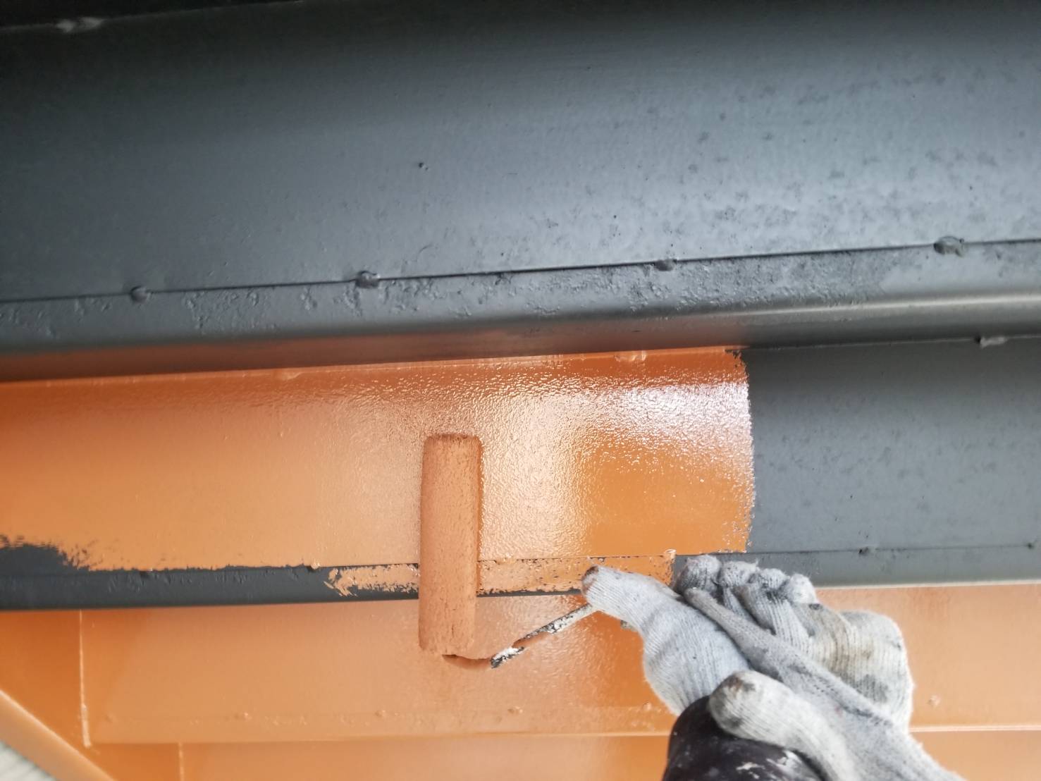 軒天と同じ色にして欲しいとの事だったので弱溶剤のワイドビーズコートsiで塗りました!
