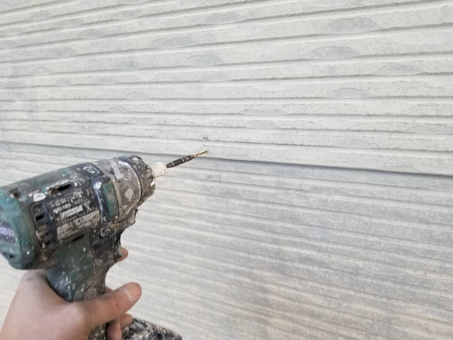 サイディングの釘が抜けた所をビスで補修していきます!