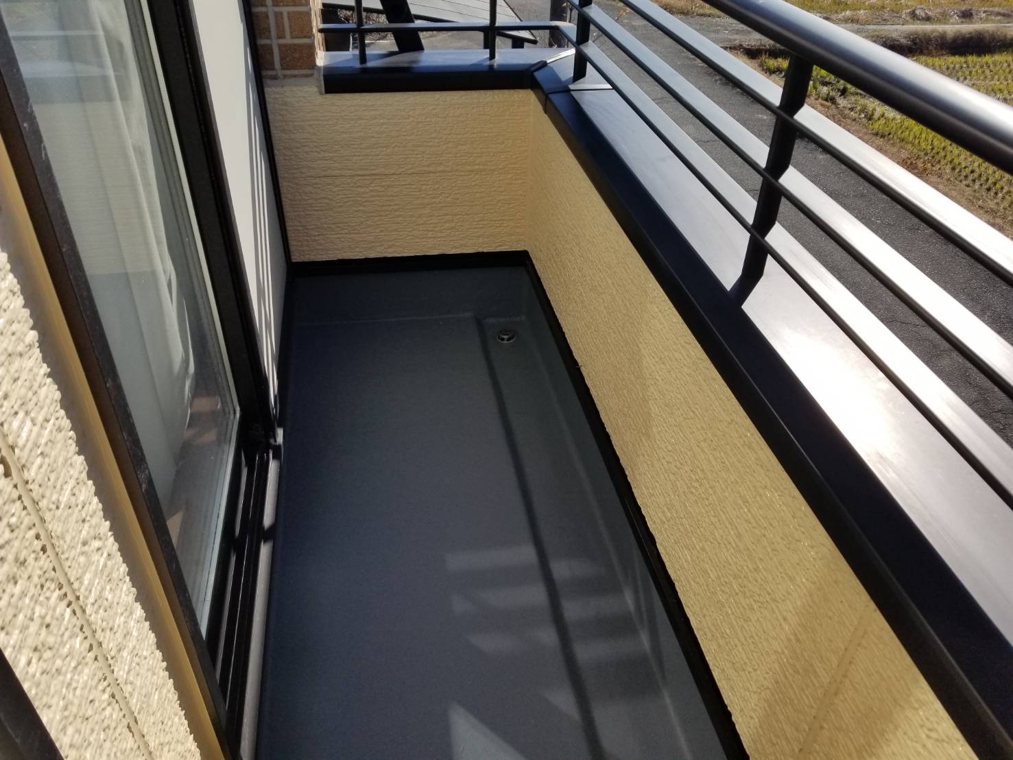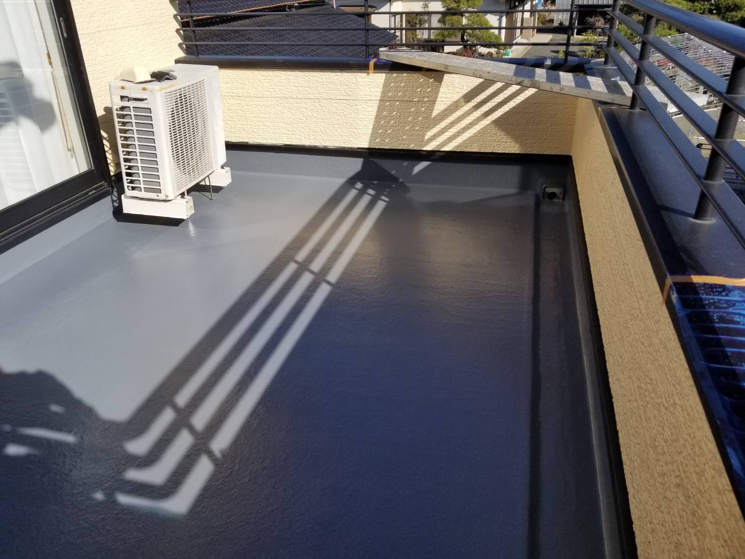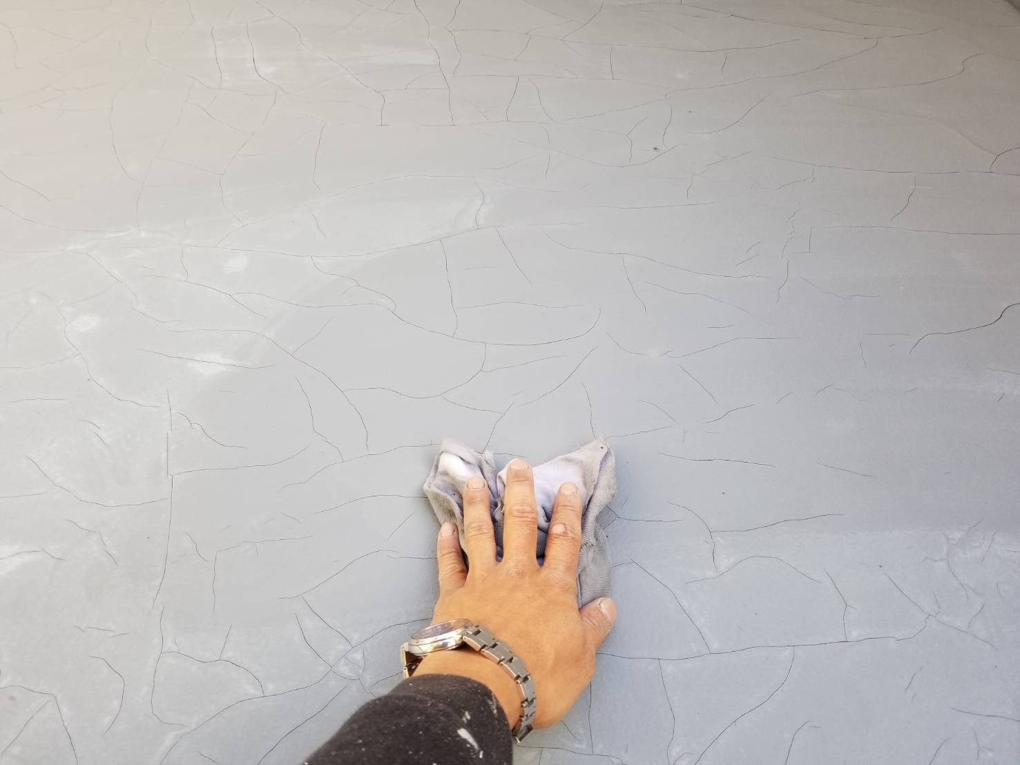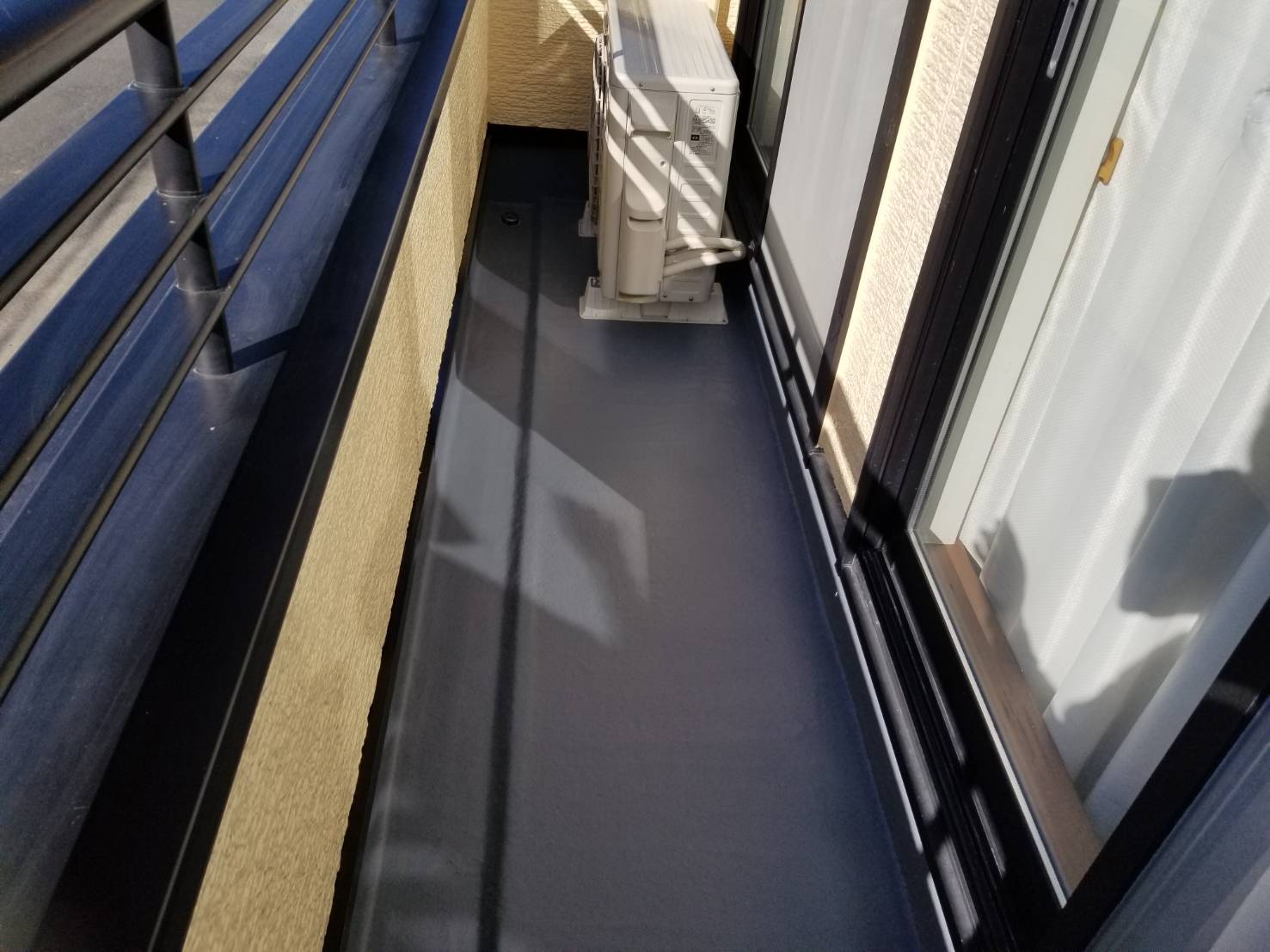 FRP防水の塗膜がひび割れしていたので塗膜の上にガラスマットをひいてからの施工になります。
