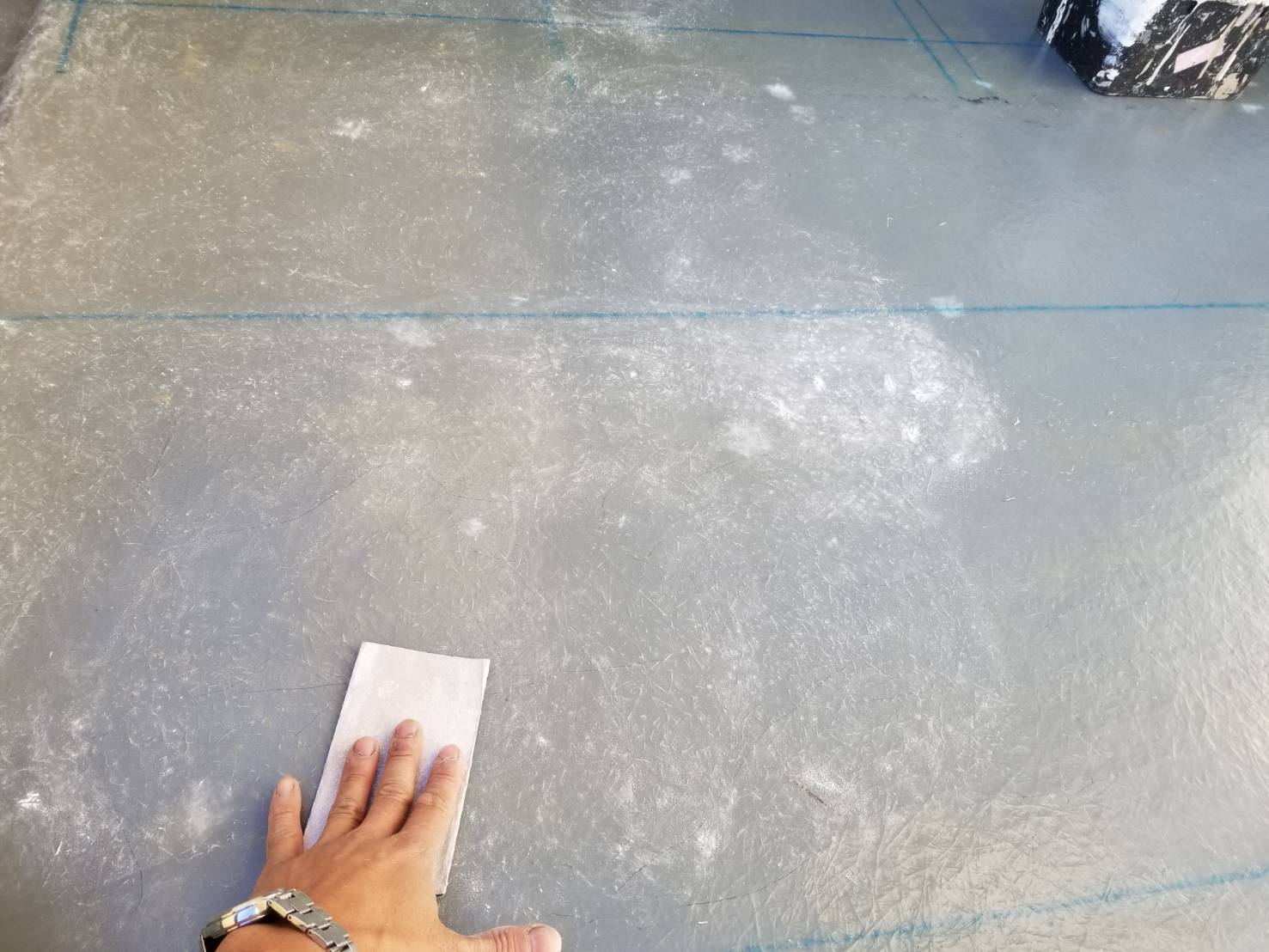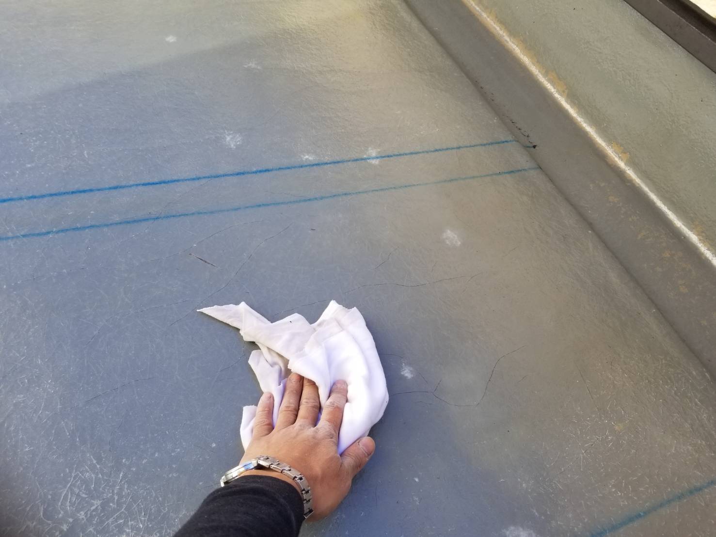 FRP防水のケレンは洗浄で落ちなかった汚れを落としたり塗膜に傷をつけて塗料を食いつかせる為の作業になります。